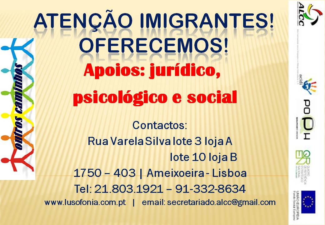 O Projecto “Outros Caminhos, surge no âmbito dos projectos de integração do imigrante através do PAAI-2011/12 (ACIDI), onde a ALCC tem um conjunto de actividades de fundamental importância e extrema relevância para promover a integração do imigrante, contribuindo para uma melhor inserção ao nível pessoal e profissional, intervindo na defesa dos seus direitos e na promoção de sua integração psicosocial, além intervir na melhoria da condição socio-economica dos atendidos, realizando triagem, atendimento, encaminhamento e acções de sensibilização e mobilização para promoção do respeito aos direitos Humanos, em nossa sociedade.